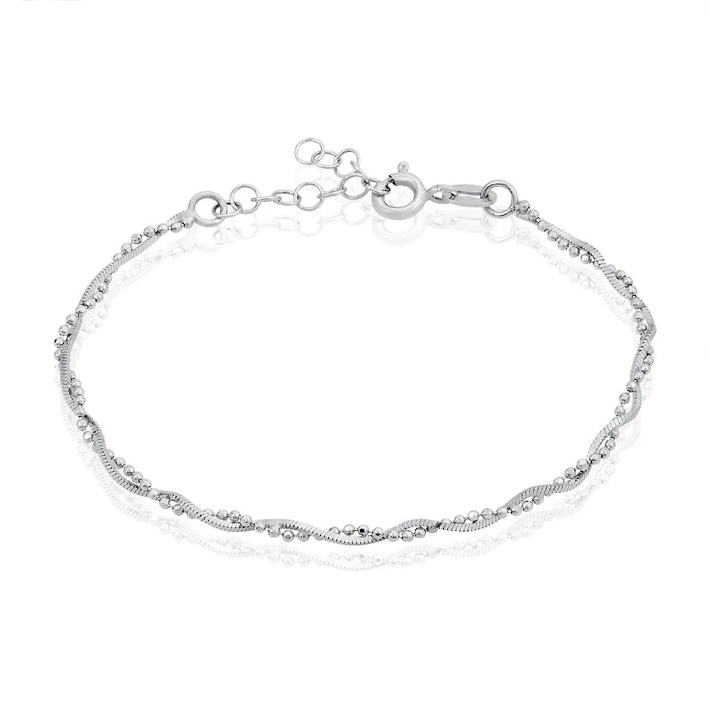 Bracelet Argent Blanc 925/1000 Torsade Double Mailles Serpent Et Boules 18.50cm
