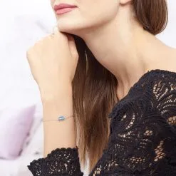 Bracelet Argent 925/1000 Et Pierre Bleue 19cm
