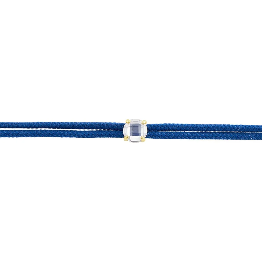 Bracelet Or Jaune 375/1000 Oxyde De Zirconium Cordon Ajustable Bleu 14cm