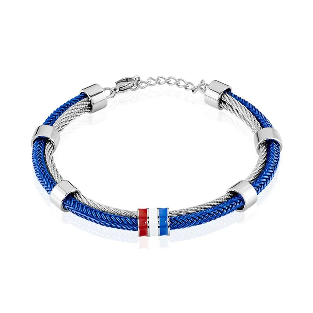 Bracelet Tungsten Blanc Cable Et Cordon Bleu Et Couleurs France 21cm