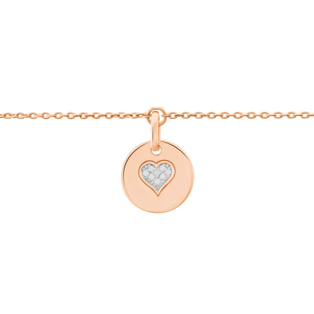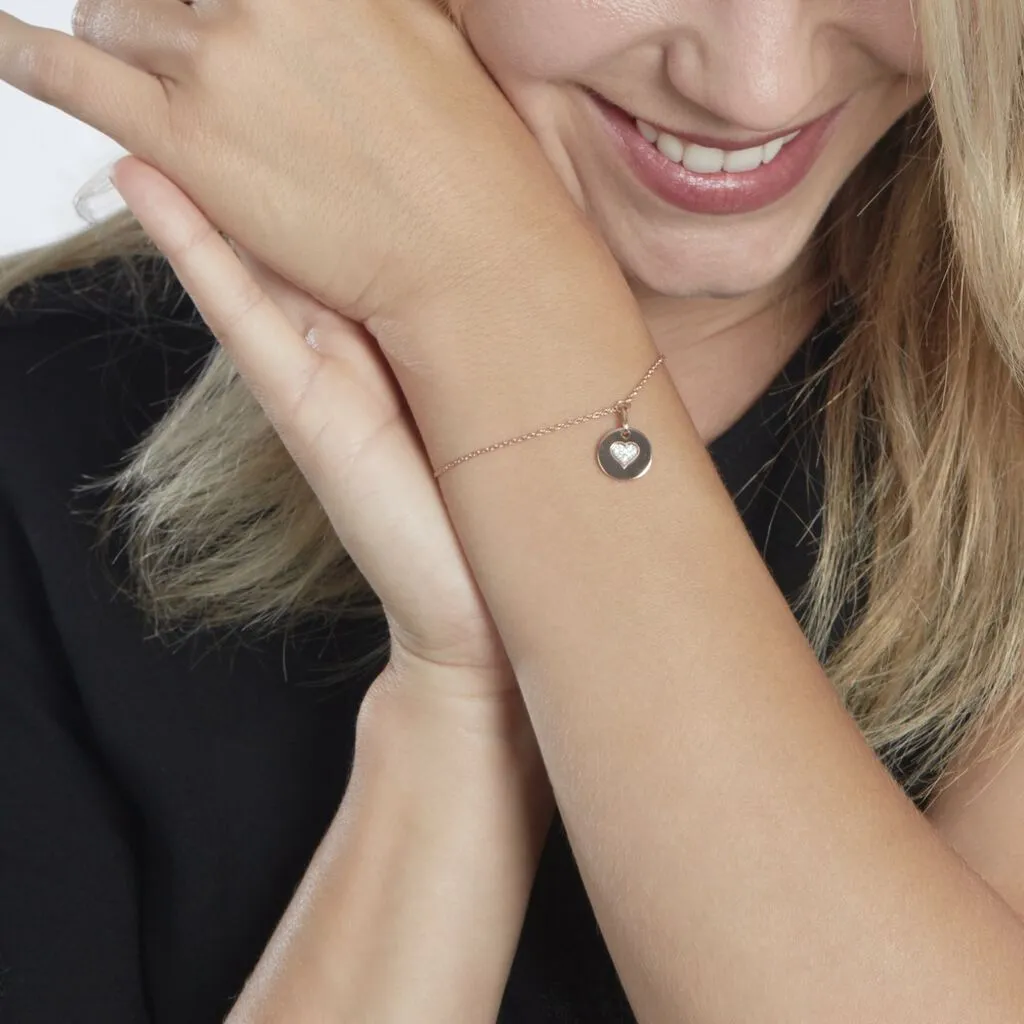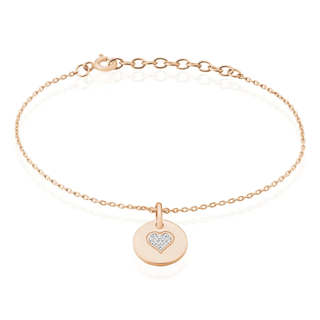 Bracelet Argent Rose 925/1000 Pastille Cœur Maille Forcat Pavage Oxydes De Zirconium 18.5cm