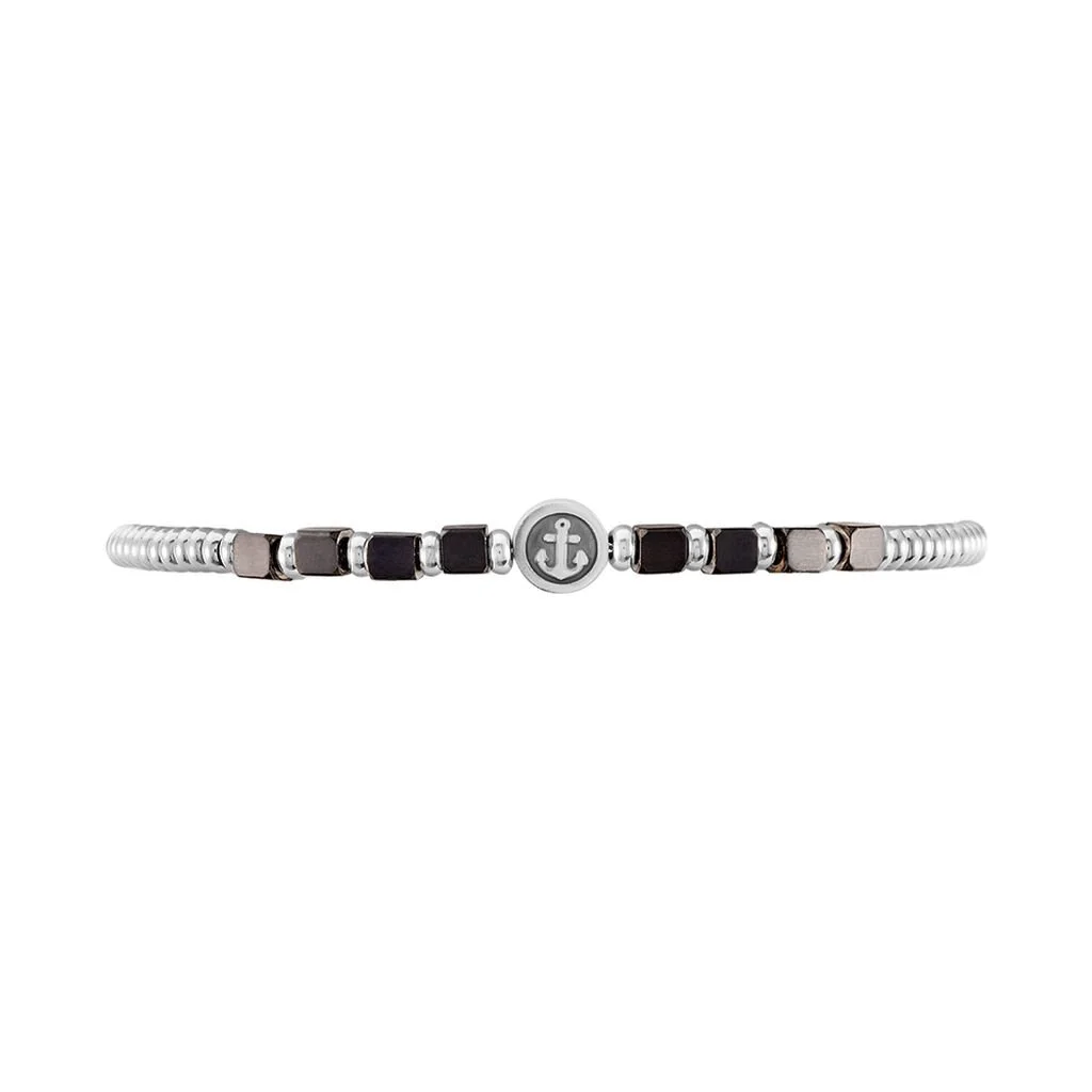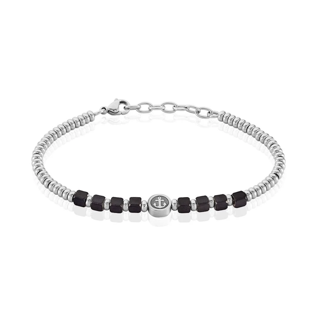 Bracelet Zero Limite Acier Pastille Ancre Marine Maille Boules Et Carres Ip Noirs 21cm