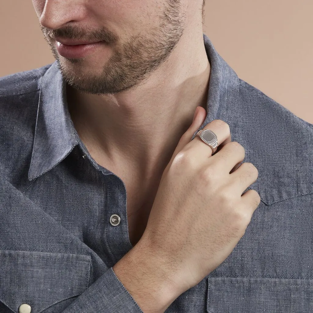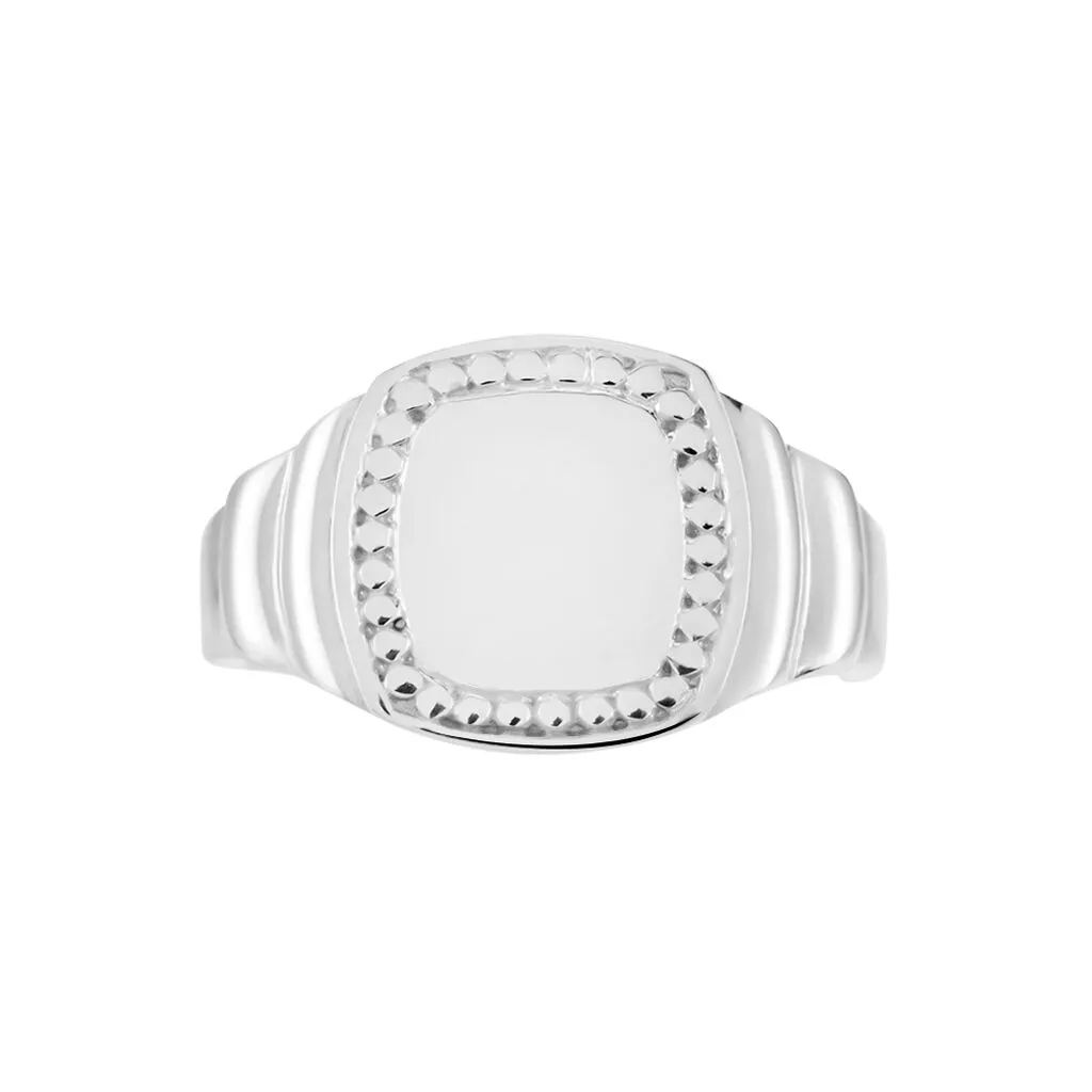 Chevalière Argent Blanc 925/1000 Carrée Effet Perlé
