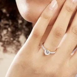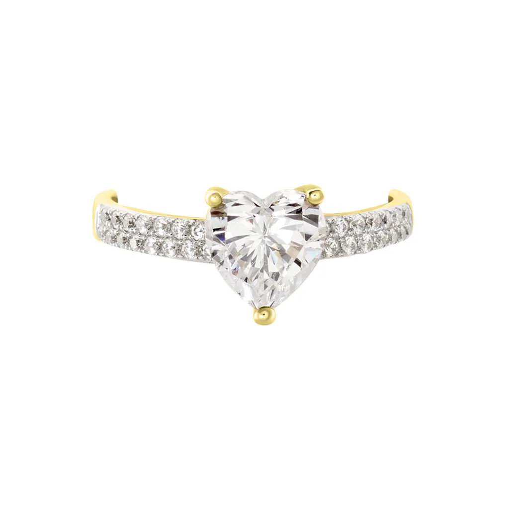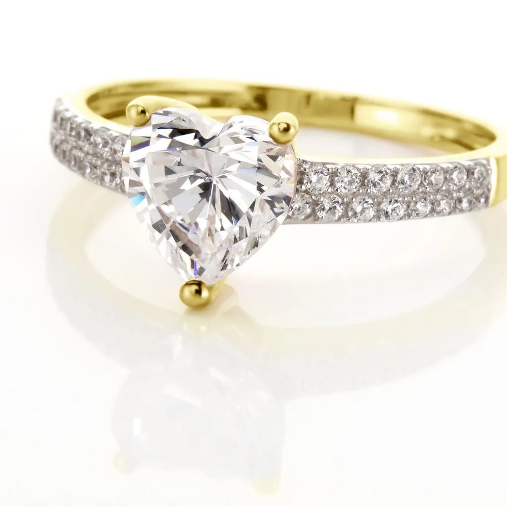 Solitaire Accompagné Or Jaune 375/1000 Oxyde De Zirconium 1.37 Cts Forme Cœur Serti Griffes