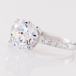 Solitaire Or Blanc 375/1000 Oxyde De Zirconium Central Rond Accompagne D’oxydes De Zirconium