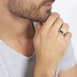 Bague Acier Et Pvd Noir Multirangs Lisse
