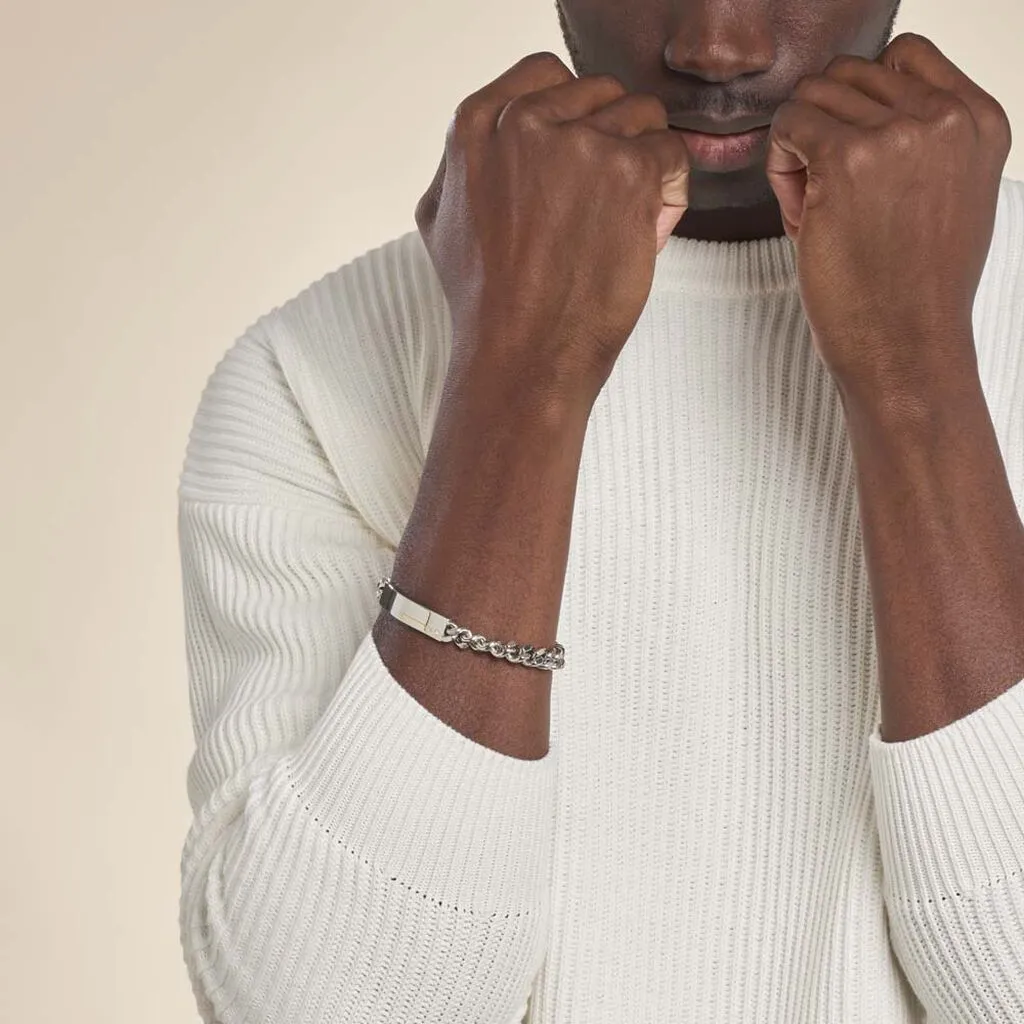 Bracelet Identite Acier Blanc Avec Barrette Or Jaune Et Diamant 21cm