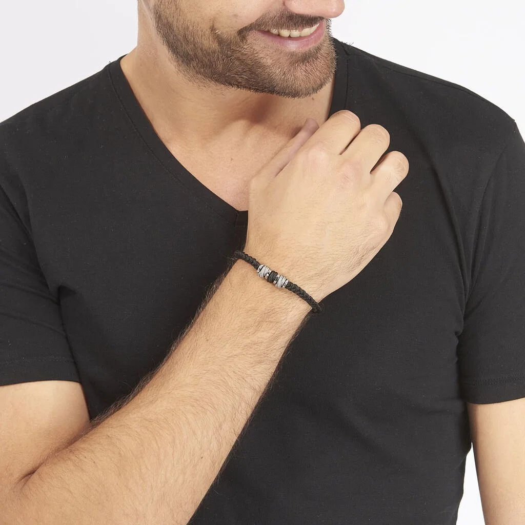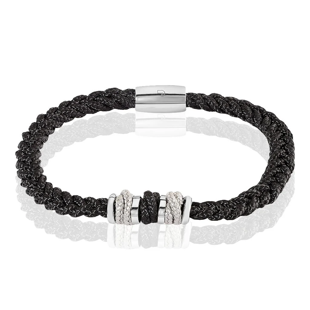 Bracelet Homme Or Et Acier Cordon Marin Noir + 2 Noeuds Cordon Marin Gris 21cm
