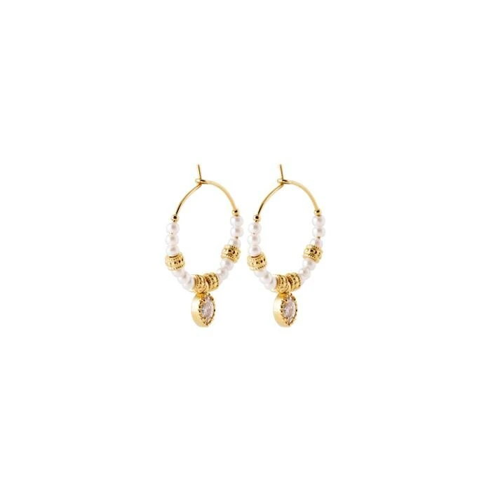 La Coque De Nacre Boucles D’oreilles Créoles En Plaqué Or, Perles D’imitation Et Oxydes De Zirconium