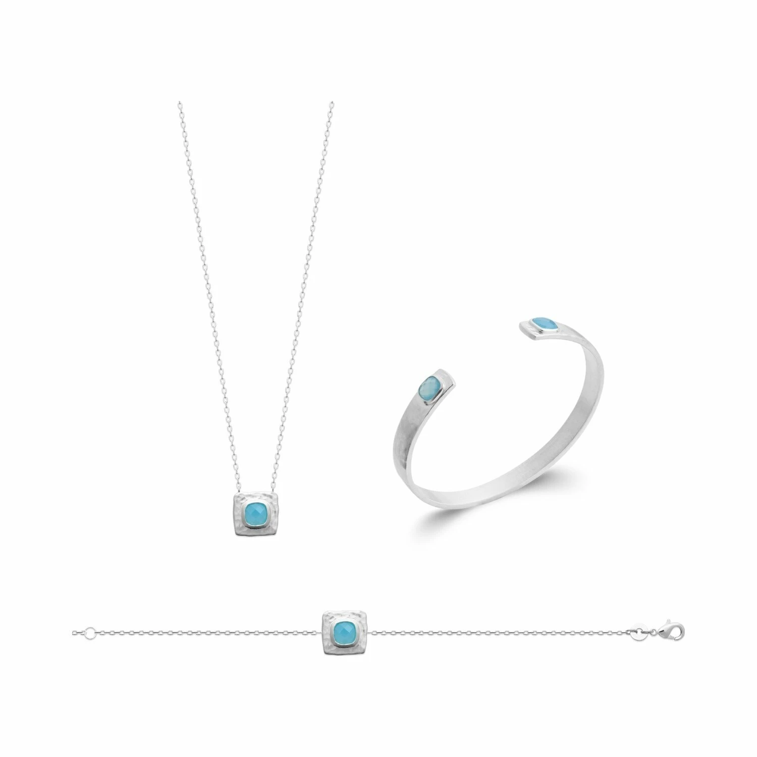 La Coque De Nacre Bracelet Jonc En Argent Rhodié Et Agate Bleue