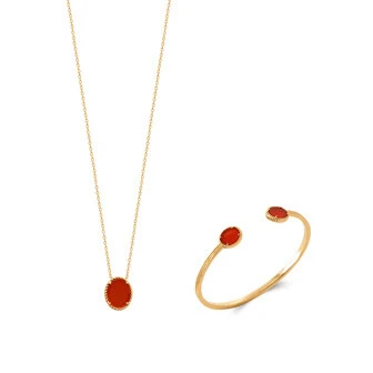 La Coque De Nacre Collier En Plaqué Or Et Agate Rouge, 45cm