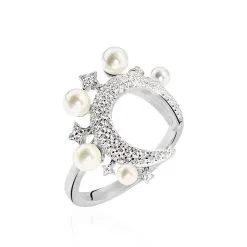Bague Argent 925/1000 Lune Entourage Perle De Synthese Oxyde