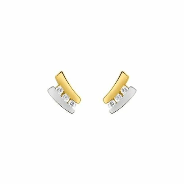 Robbez Masson Boucles D’oreilles En Or Jaune, Or Blanc Et Oxydes De Zirconium